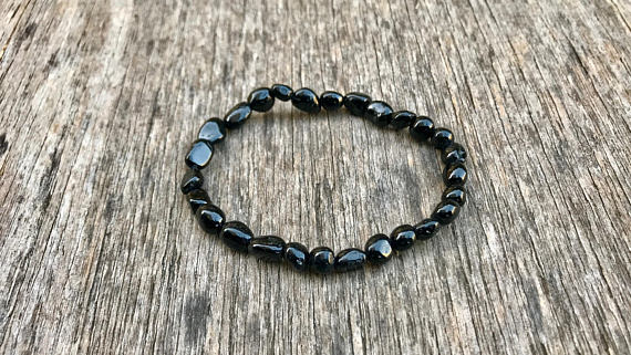 At a Great Pricelove beach youth 6-8mm Stretchable Black Black Tourmaline Bracelet Oval, Smooth 7" for mens, womens, gf, bf & Adult.