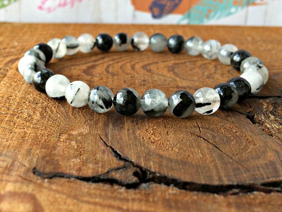 At a Great Pricelove beach youth 6mm Stretchable Black & White Rutilated Quartz Bracelet Round, Smooth 7" for mens, womens, gf, bf & Adult.