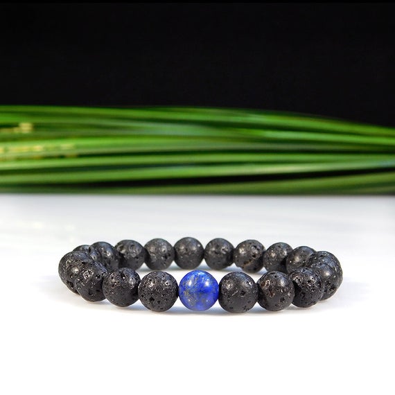 At a Great Pricelove beach youth 8mm Stretchable black & Blue Lapis Lazuli and Lava Rock Bracelet Round, Smooth 7" for mens, womens, gf, bf & Adult.