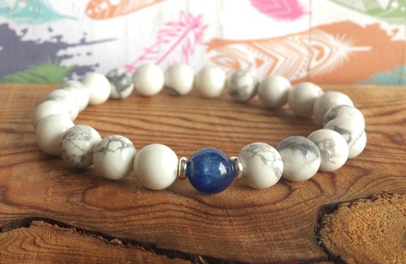 At a Great Pricelove beach youth 8mm Stretchable Blue & White Howlite & Kyanite Bracelet Round, Smooth 7" for mens, womens, gf, bf & Adult.