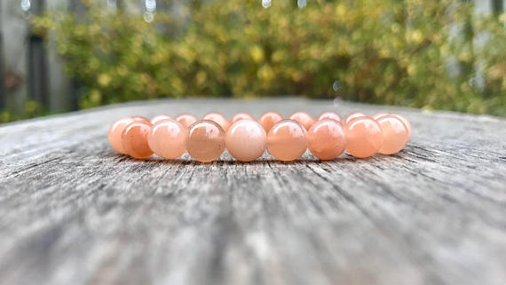 At a Great Pricelove beach youth 8mm Stretchable Orange Orange Moonstone Bracelet Round, Smooth 7" for mens, womens, gf, bf & Adult.