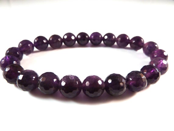 At a Great Pricelove beach youth 8mm Stretchable Purple Amethyst Bracelet Round, Faceted 7" for mens, womens, gf, bf & Adult.