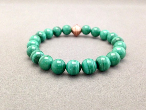 At a Great PriceMalachite & Copper Stretch Bead Bracelet for Protection Against Negativity, Cleansing Chakras, Transformation and Luck 8mm Code- WAR6205