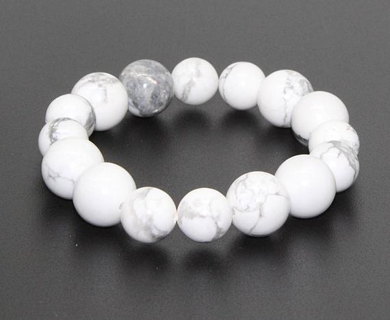 At a Great Pricememorial gift 10-12mm Stretchable white Howlite Bracelet Round, Smooth 7.5" for mens, womens, GF, BF, Adults.
