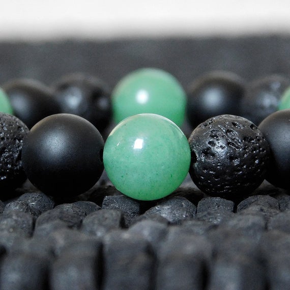 At a Great Pricememorial gift 10mm Stretchable Black & Green Aventurine, Onyx, and Lava Rock Bracelet Round, Smooth 7.5" for mens, womens, gf, bf & Adult.
