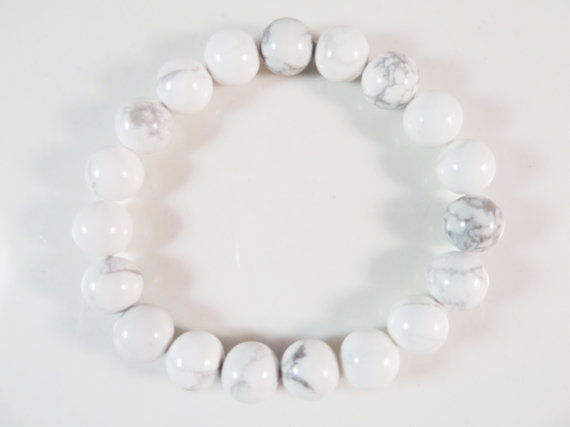 At a Great Pricememorial gift 10mm Stretchable White White Howlite Bracelet Round, Smooth 7.5" for mens, womens, gf, bf & Adult.