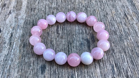 memorial gift 12mm Stretchable Pink Rose Quartz Bracelet Round, Smooth 7.5" for mens, womens, gf, bf & Adult.