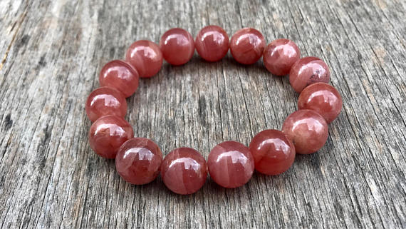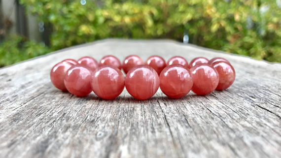 At a Great Pricememorial gift 14mm Stretchable Pink Rhodochrosite Bracelet Round, Smooth 7.5" for mens, womens, gf, bf & Adult.
