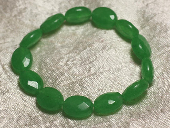 At a Great Pricememorial gift 14x10mm Stretchable Green Jade green Bracelet Oval, Faceted 7" for mens, womens, gf, bf & Adult.