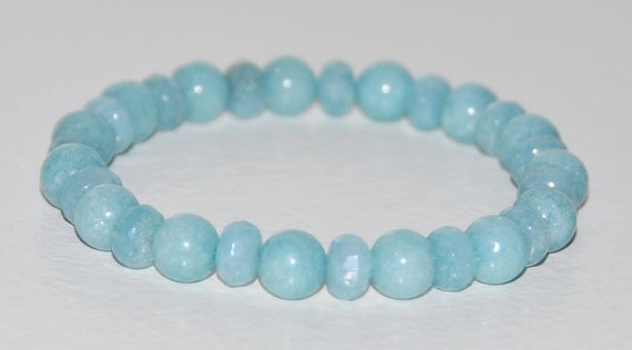 memorial gift 8mm Sky Blue Aquamarine Stretchable Bracelet Rondelle,Round, Smooth 18cm for mens, womens, gf, bf and adults.