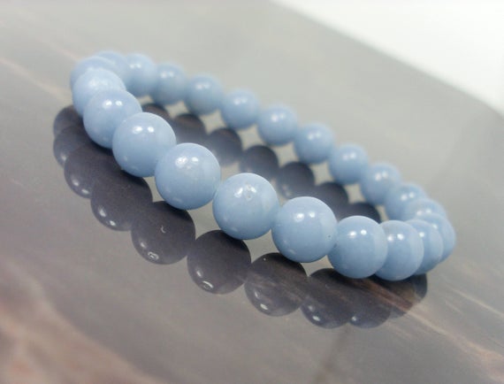 At a Great Pricememorial gift 8mm Stretchable Blue Angelite Bracelet Round, Smooth 7" for mens, womens.