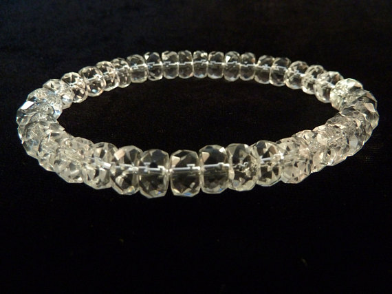 At a Great Pricememorial gift 8mm Stretchable Clear Clear Quartz Crystal Bracelet Rondelle, Faceted 7" for mens, womens, gf, bf & Adult.
