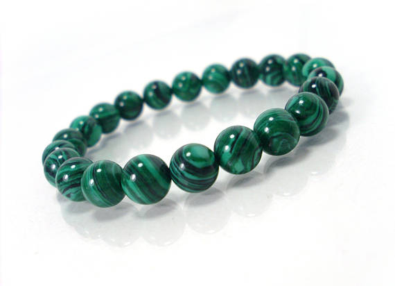 At a Great Pricememorial gift 8mm Stretchable Green Malachite Bracelet Round, Smooth 7" for mens, womens.