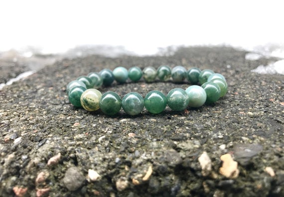 At a Great Pricememorial gift 8mm Stretchable Green Moss Agate Bracelet Round, Smooth 7" for mens, womens, gf, bf & Adult.