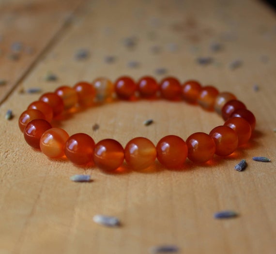 At a Great Pricememorial gift 8mm Stretchable Orange Carnelian Bracelet Round, Smooth 7" for mens, womens.