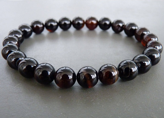 Mens Black Bracelet, Mens Black Agate Jewelry, Men's Jewelry, Gemstone Bracelet, Black Bracelet, Stretch Bracelet, Beaded Bracelet, gift for 8mm Code- WAR9165