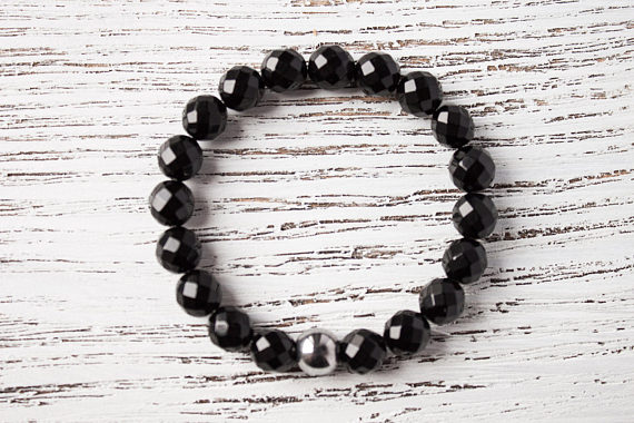 At a Great PriceMinimalist Black Bracelet Black Agate Bracelet Faceted Black Beads Gray Hematite Bracelet Black Gray Bracelet Dainty Black Bracelet 8mm Code- WAR9189