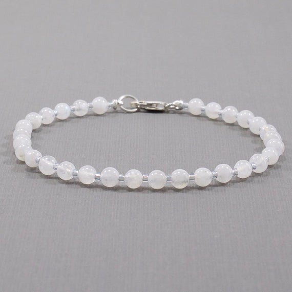 At a Great PriceMoonstone Bracelet, June Birthstone, Sterling Silver Clasp, Dainty, Delicate 4mm Code- WAR6549