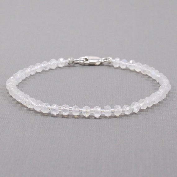Moonstone Bracelet Women, Stacking, Gemstone, Sterling Silver, White, Dainty, Delicate 3mm Code- WAR6550
