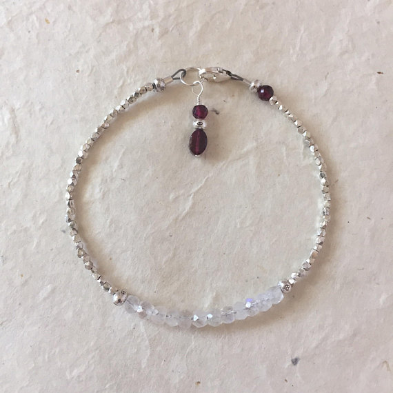 At a Great PriceMoonstone Garnet Karen Hill Tribe Thai Silver Beaded Bracelet, Sundance Style, January Birthstone 1.7 - 2 mm Code- WAR6441