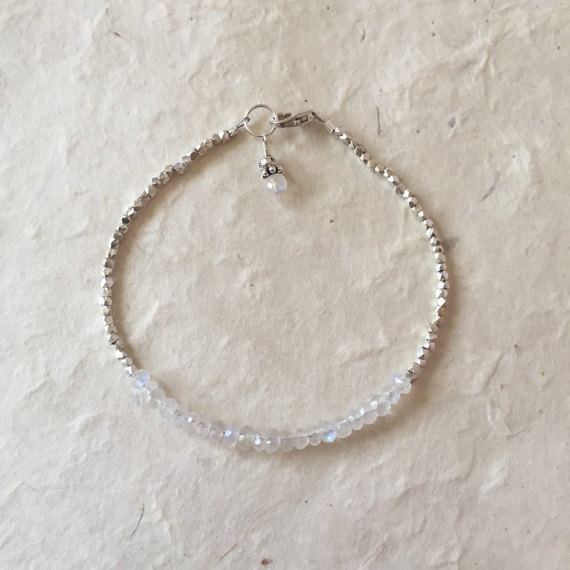 At a Great PriceMoonstone Karen Hill Tribe Silver Bracelet with Dangle, Sundance Style, June Birthstone, Birthday Gift, Boho Stack Bracelet 3-4mm Code- WAR6442