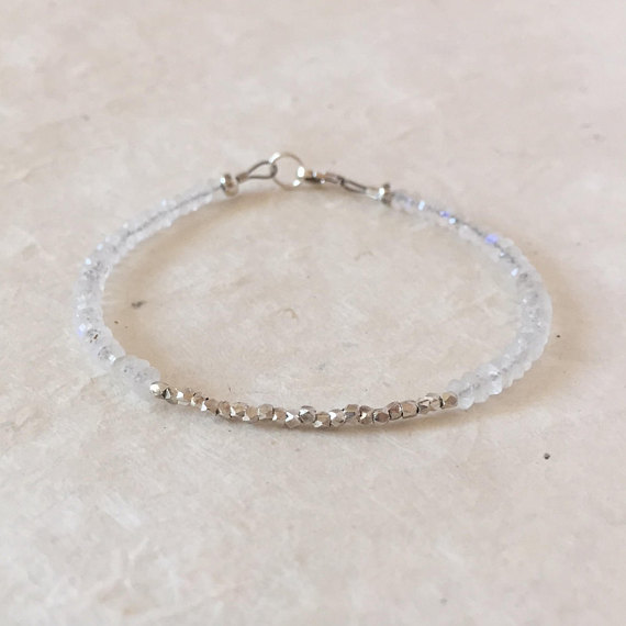At a Great PriceMoonstone Karen Hill Tribe Thai Silver Beaded Bracelet, Sundance Style, Boho Stacking Bracelet 3-4 mm Code- WAR6400