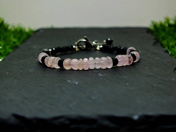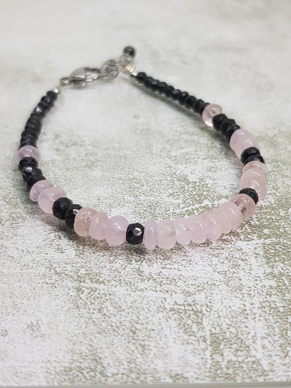 At a Great PriceMorganite and Black Spinel Petite Stacking Bracelet. All Quality Gemstone on Steel Clasps 4x1 to 5x3mm Code- WAR6803