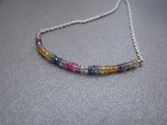 At a Great PriceMulti Coloured Sapphire Faceted Rondelle Gemstone Sterling Silver Bar Chain Necklace Sapphire Gemstone beaded Necklace 2-3 mm Code- WAR6488