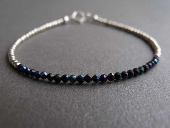 At a Great PriceMystic Midnight Black Spinel Gemstone with Sterling Silver Round Beads Dainty Stacking Bracelet 2-3mm Code- WAR6510