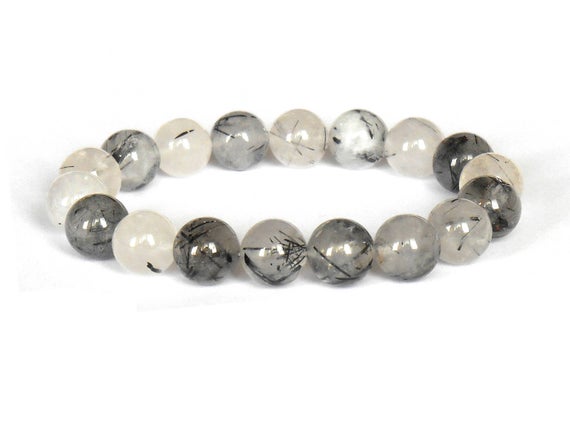 At a Great PriceNatural 10mm Multi Colour Black Tourmalinated Quartz Stretchable Bracelet Round, Smooth 18cm for mens, womens, gf, bf and adults.