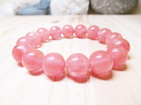 At a Great PriceNatural 12mm Stretchable pink Cherry Quartz Bracelet Round, Smooth 7.5" for mens, womens, GF, BF, Adults.