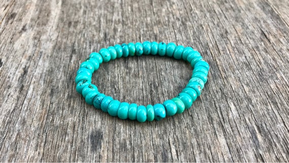 Natural 8-9mm Stretchable Blue Turquoise Bracelet Rondelle, Smooth 7" for mens, womens, gf, bf & Adult.