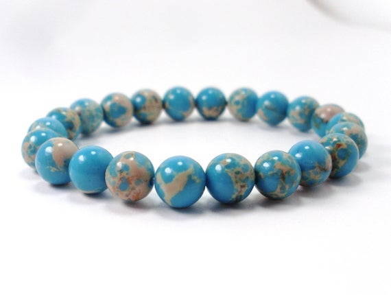At a Great PriceNatural 8mm Stretchable Blue Regalite Jasper Bracelet Round, Smooth 7" for mens, womens.