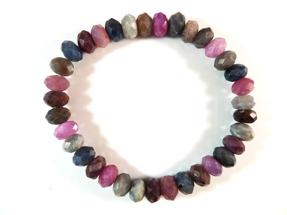 At a Great PriceNatural 8mm Stretchable Multi Multi Color Sapphire Bracelet Rondelle, Faceted 7" for mens, womens, gf, bf & Adult.