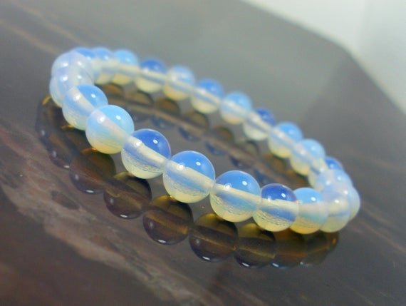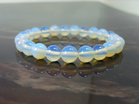 At a Great PriceNatural 8mm Stretchable White Moonstone (Opalite) Bracelet Round, Smooth 7" for mens, womens.