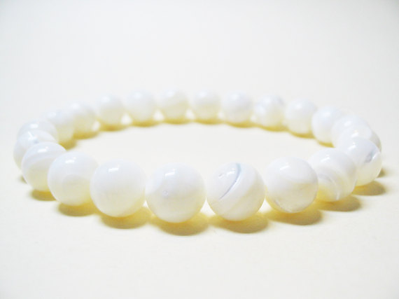 At a Great PriceNatural 8mm Stretchable white Pearl Bracelet Round, Smooth 7" for mens, womens, GF, BF, Adults.