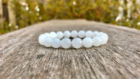 Natural 9mm Stretchable White White Jade Bracelet Round, Smooth 7.5" for mens, womens, gf, bf & Adult.