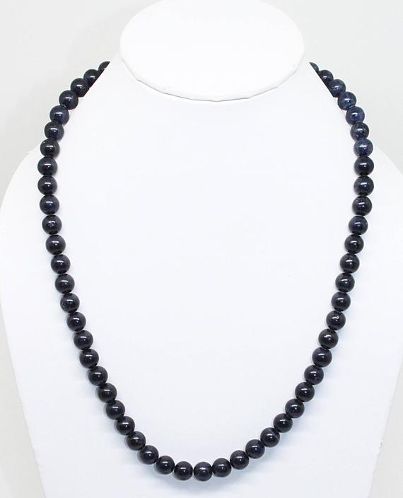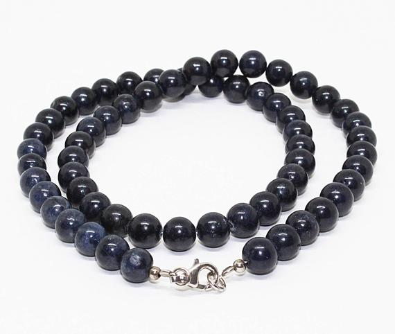 At a Great Pricenatural blue sapphire beaded necklace round ball smooth 18'' long strand gemstone beads, jewelry supplies for jewelry making, for meditation jewellery for Reiki Healing gemstone 8mm