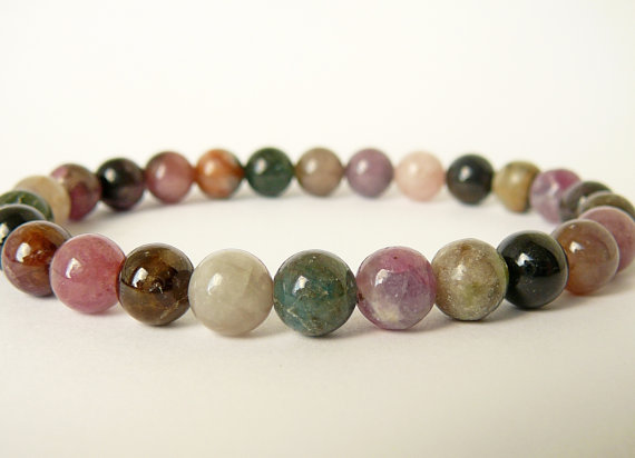 At a Great PriceNatural Tourmaline Bracelet Women Beaded Bracelet Stretch Bracelet Tourmaline Multicolor bracelet Bead Bracelet Genuine Tourmaline Bracelet 8mm Code- WAR9143
