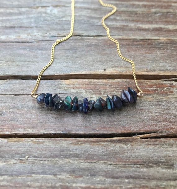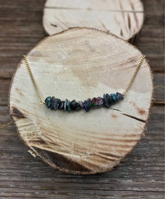 At a Great PriceOctober birthstone necklace / Dark opal necklace / Black opal necklace / Gift for her / Gift for wife / Raw gemstone jewelry Code- WAR6687