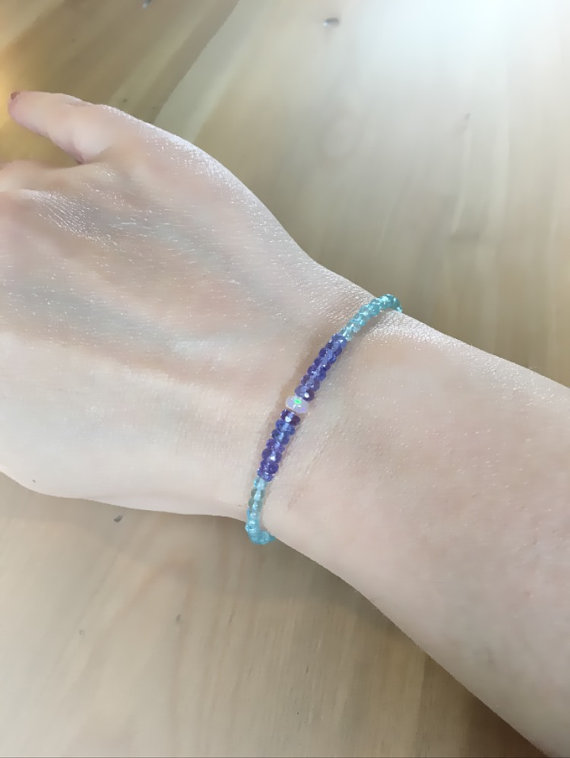 At a Great PriceOctober bracelet, Opal, tanzanite, Opal bracelet, Opal jewelry, tanzanite bracelet, apatite jewelry, 14k rose gold, tanzanite jewelry, gift 3-4mm Code- WAR6314