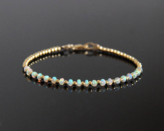 At a Great PriceOpal Beaded Bracelet Gold - Opal Bracelet, Opalite Bracelet, Natural Opal, Fire Opal Bracelet, Opal Jewelry, October Birthstone Bracelet 3.5 mm Code- WAR6070