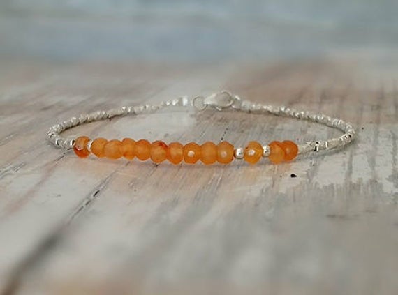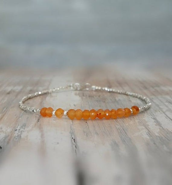 Orange Carnelian And Karen Hill Silver Beads Bracelet, Gemstone Bracelet, Gifts For Her 3.5mm Code- WAR6669