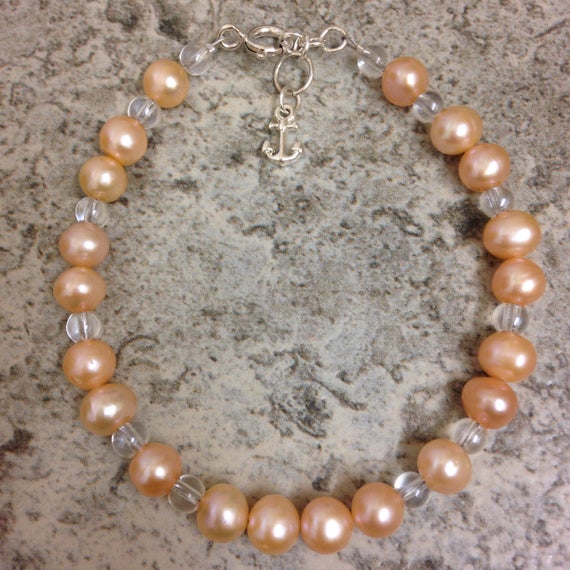 At a Great PricePeach freshwater cultured Round pearl genuine gemstone 925 sterling silver anchor charm bracelet 6-7mm Code- WAR6623