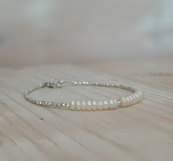 At a Great PricePearl And Silver Beads Bracelet, Freshwater Pearl Layering Bracelet, June Birthstone, Bridal Bracelet, Organic Jewelry 4 mm Code- WAR6668