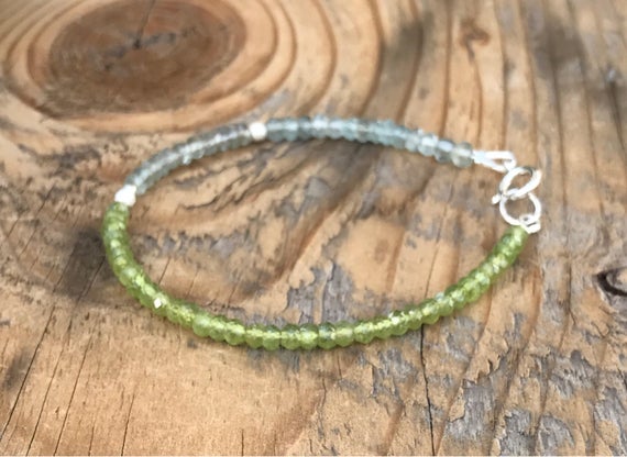 At a Great PricePeridot and Aquamarine Sterling Silver Bracelet-Energy Healing Gemstones-Ombre- Stacking-August Birthstone-March Birthstone-Boho 3-3.5 mm Code- WAR6787