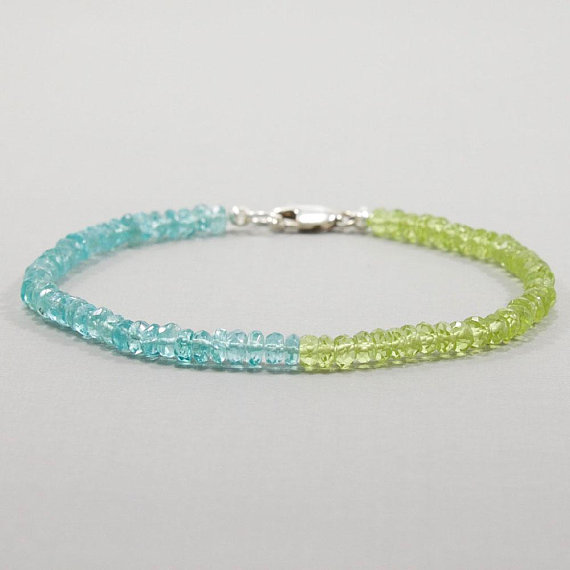Peridot Apatite Bracelet, Gemstone, Handmade, Stacking, Sterling Silver, Gift for Her 3mm Code- WAR6553