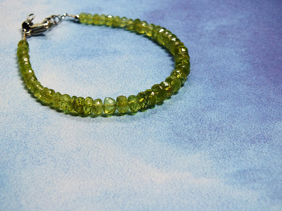 At a Great PricePeridot Graduated Faceted Rondelles Timeless Stacking Bracelet. All Quality Gemstone on Steel Clasps 2x1 to 6x2mm Code- WAR6819