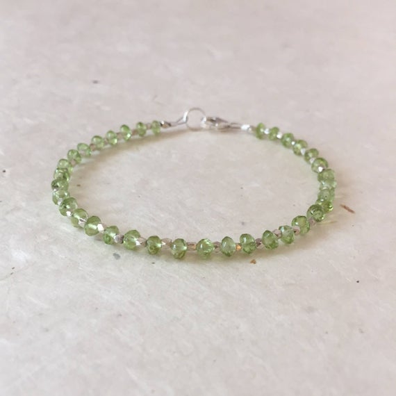 At a Great PricePeridot Karen Hill Tribe Thai Silver Beaded Bracelet, Sundance Style, August Birthstone, August Birthday, Dainty Bracelet, Layering Bracelet 2-4mm Code- WAR6476