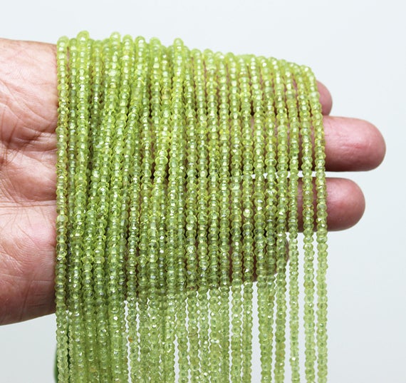peridot rondelle faceted 13'' long strand gemstone beads, jewelry supplies for jewelry making, bulk beads, for meditation jewellery for Reiki Healing gemstone 3mm